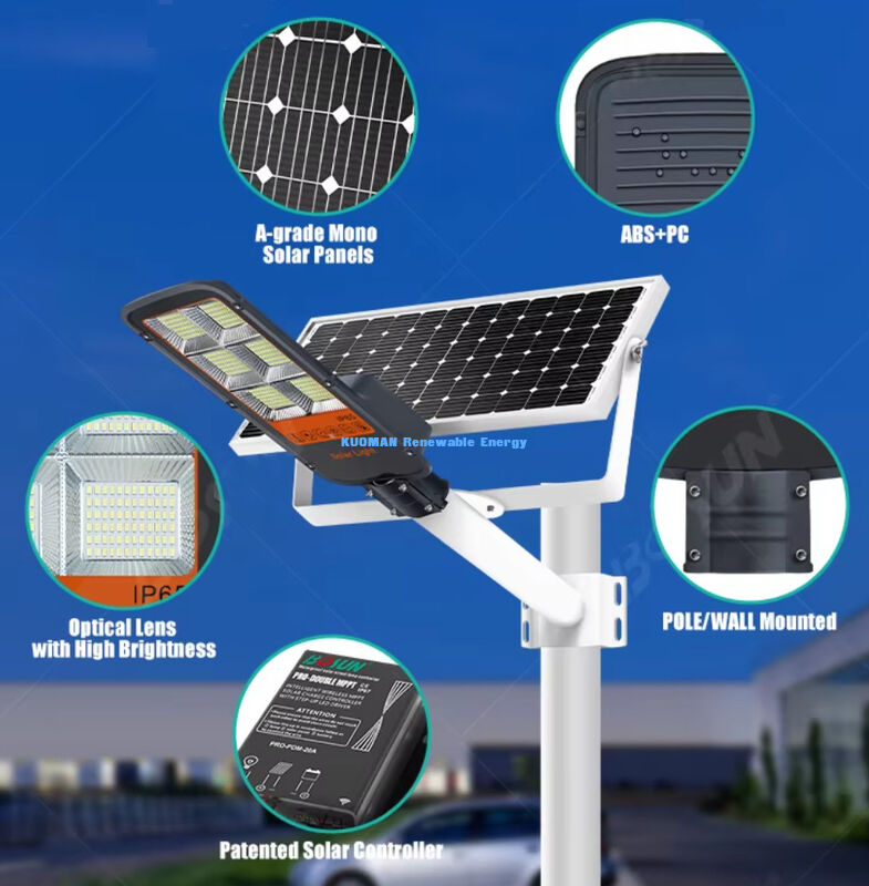 مصباح الشارع الشمسي المقاوم للماء ذو الذراع المزدوجة